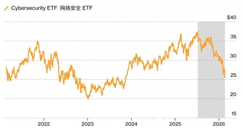 圖丨網絡安全 ETF 近期連續下跌(來源:Bloomberg)