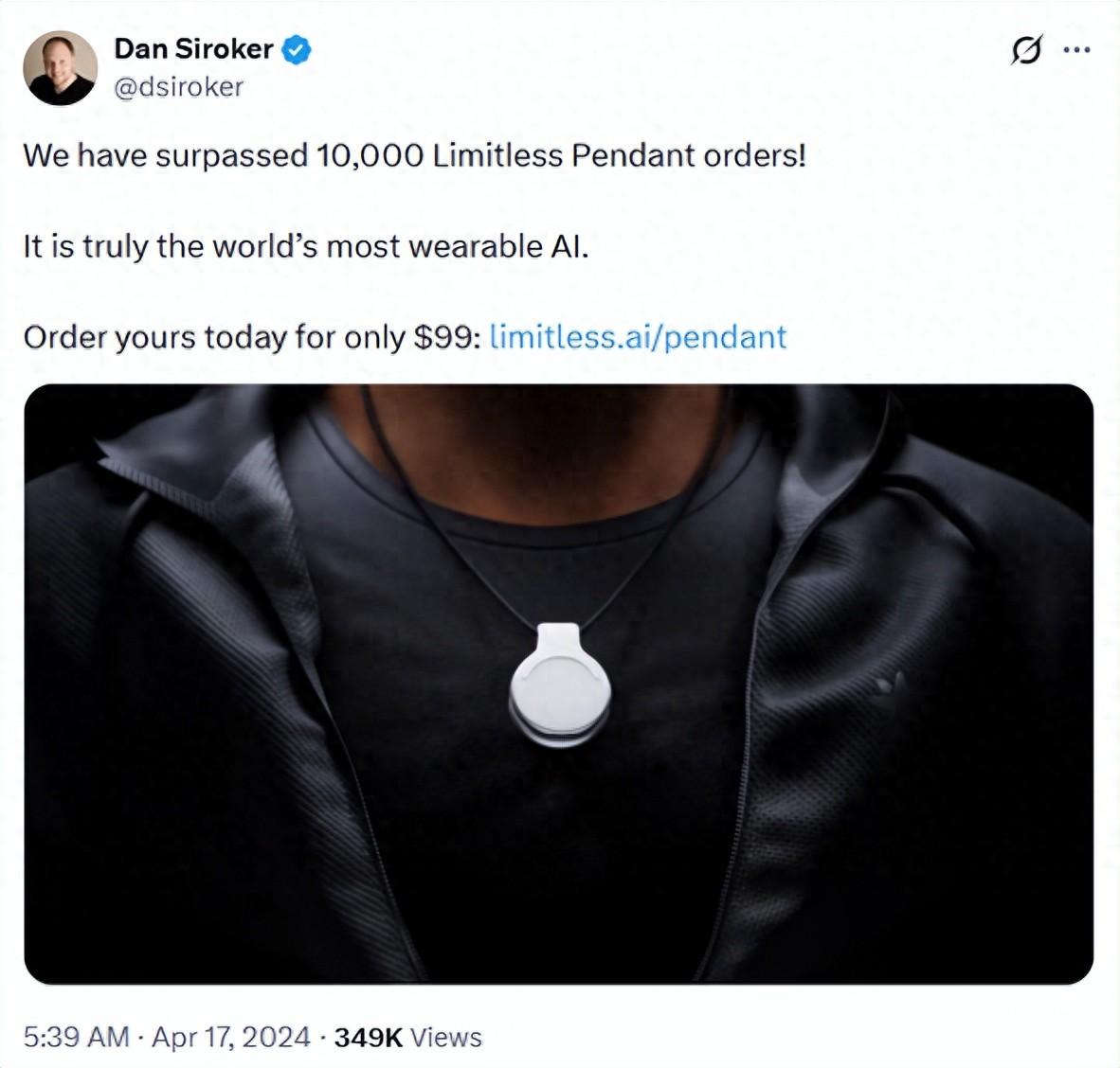 Limitless 聯合創始人兼 CEO 丹·西羅克(Dan Siroker)在公告中提到,“我們將繼續爲現有 Pendant 用戶提供至少一年的支持,但我們不再向新客戶銷售 Pendant。您無需再支付訂閱費用,現有客戶可免費獲得無限流量套餐。”