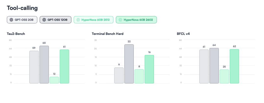 相比 1 月份的初版 HyperNova 60B,本次更新聚焦於工具調用(tool calling)和代理式編碼(agentic coding),這些正是推理成本較高的核心場景。