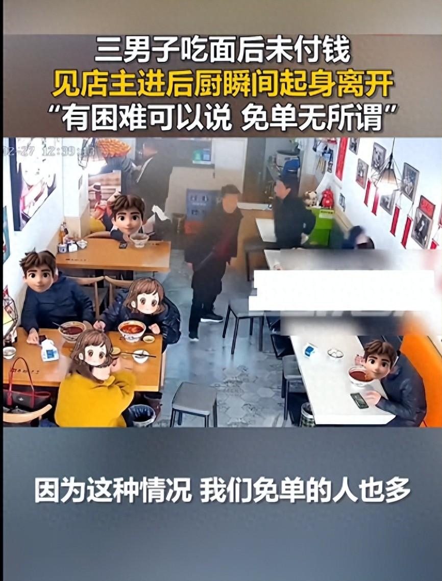 雷先生在視頻裏說的話,聽着挺實在:如果有困難可以說,免單也無所謂,沒必要這樣。這話裏沒帶什麼情緒,就是單純的不理解。就三碗麪沒多少錢,用不着齊刷刷的逃跑。