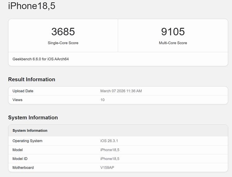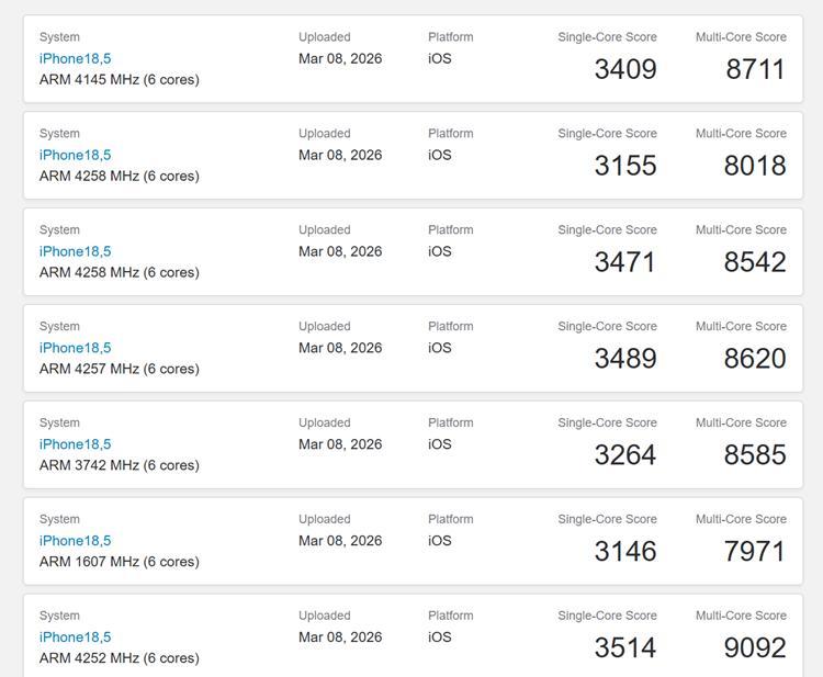 蘋果已經發布了iPhone 17e手機,將會搭載一顆閹割版本的A19處理器,目前該手機已經出現在跑分庫中,由於CPU沒有太大的變化,因此跑分幾乎與標準版一樣,符合預期。然而GPU由於規格有所減少,因此跑分也差了一大截。