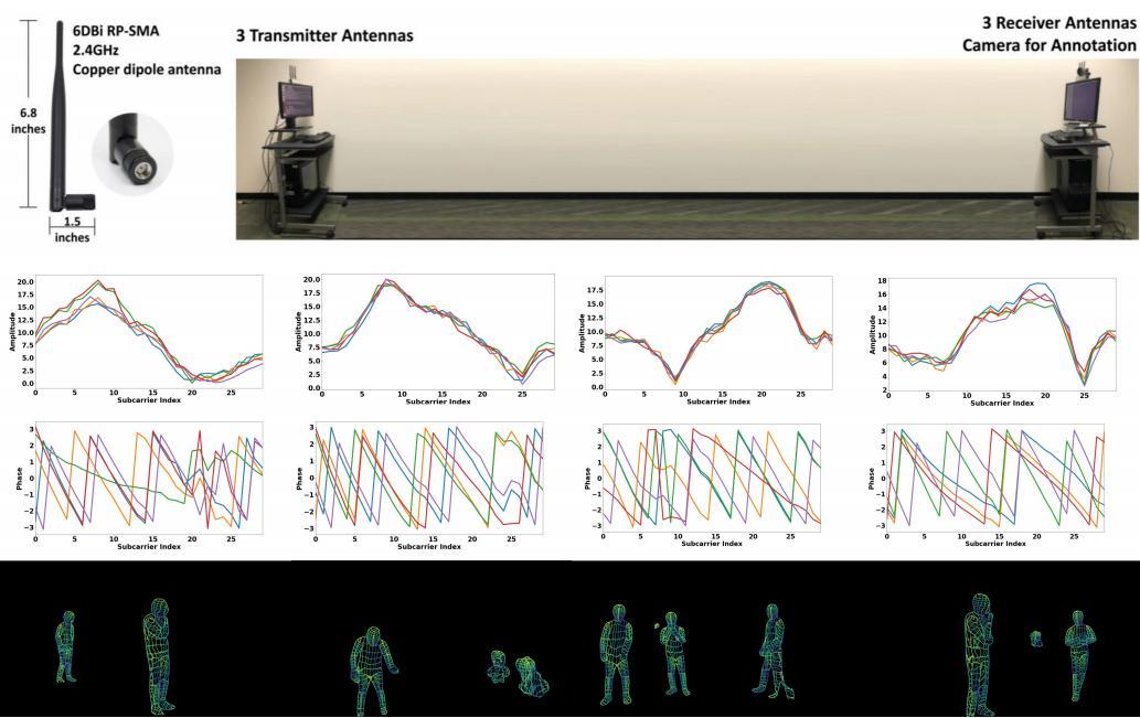 這項技術的原型來自卡內基梅隆大學團隊的學術成果,相關論文題目爲“DensePose from WiFi”。該系統的關鍵技術在於 WiFi 設備的信道狀態信息(CSI,Channel-state-information),通過 3 個發射天線和 3 個接收天線採集信號。