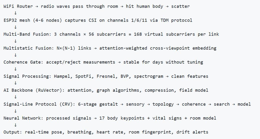 根據項目公開資料,該系統以 54,000 幀/秒的處理速度運行,即便多人同時在室內也可實現穿牆檢測,探測深度可達 5 米。系統完全在低成本硬件支持下運行,例如 ESP32 傳感器網絡(每個節點成本低至約 1 美元),整個模型僅需 55 KB 內存。