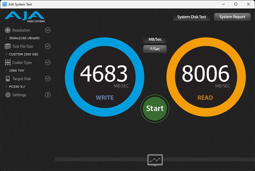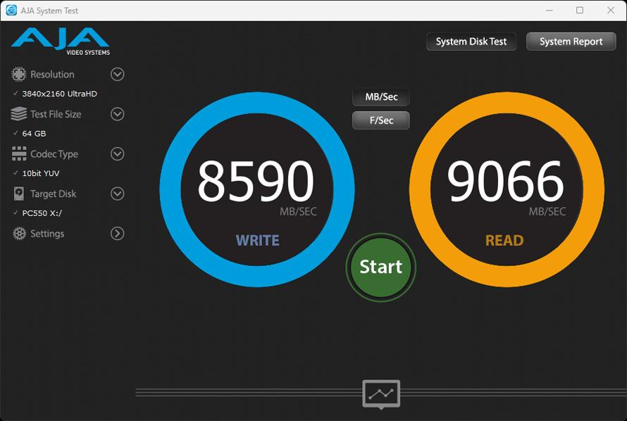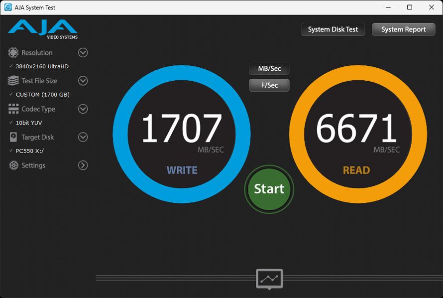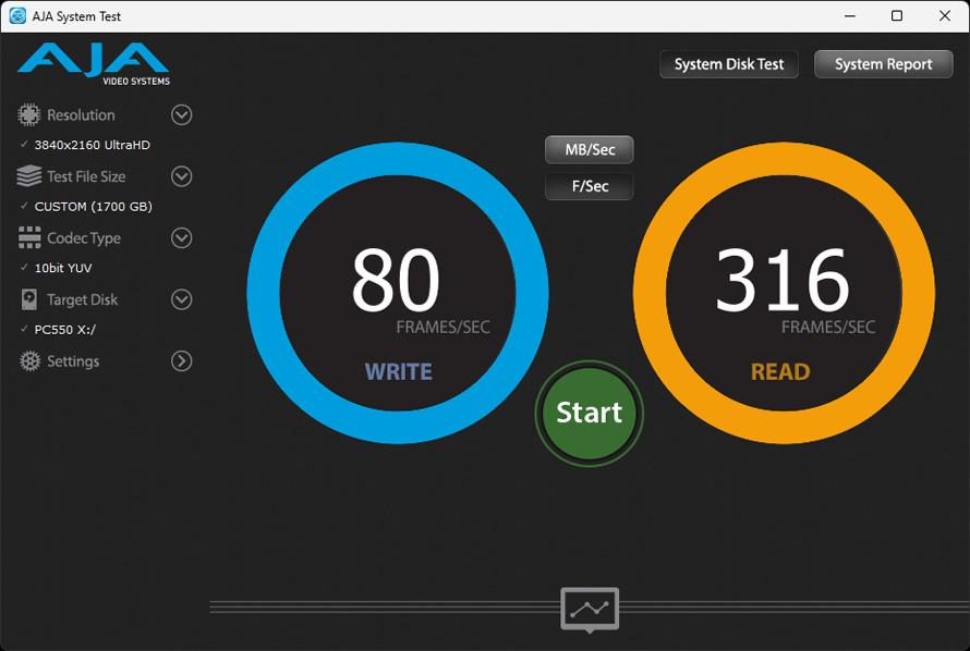 AJA System Test,視頻生產力測試軟件,用於評估SSD是否滿足4K視頻製作與後期工作的性能需求。