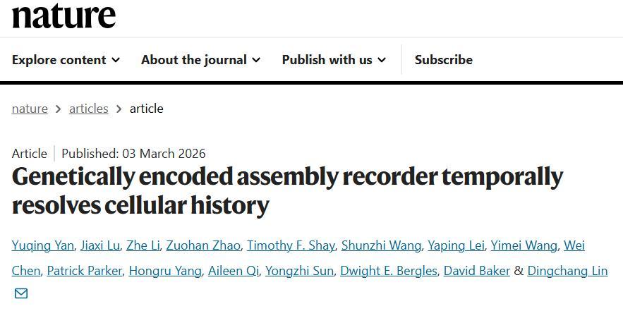 近日,相關論文以《遺傳編碼的組裝式記錄儀實現細胞歷史的時間分辨解析》(Genetically encoded assembly recorder temporally resolves cellular history)爲題發表在 Nature[1]。約翰斯·霍普金斯大學博士生嚴宇清、陸家禧和華盛頓大學李喆博士(現南方科技大學教授)是論文共同第一作者,林鼎昌教授擔任通訊作者。