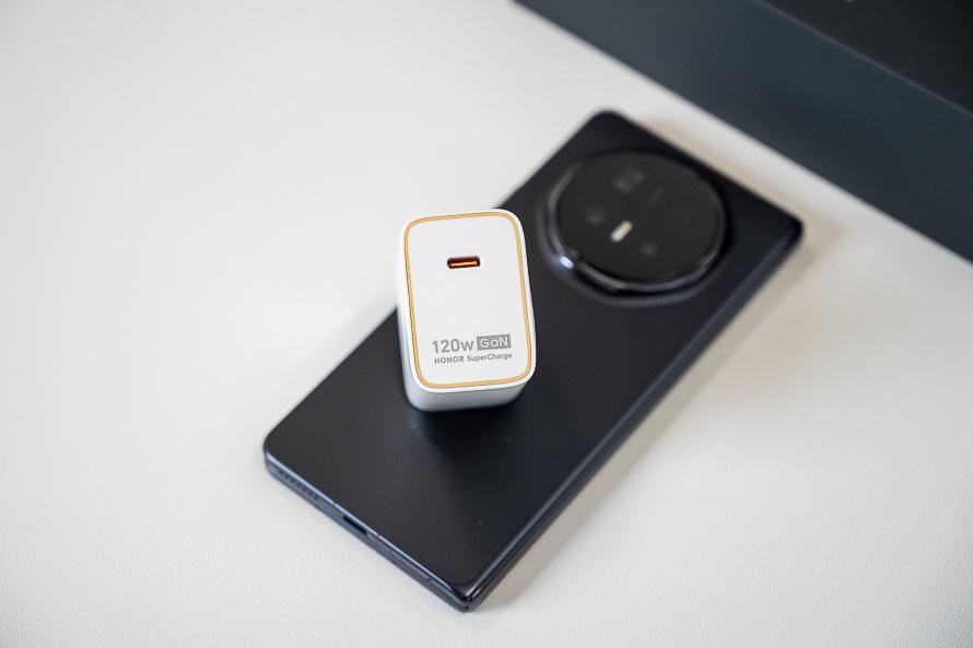 非常有意思的是,榮耀Magic V6支持80W有線快充以及66W無線快充,而手機包裝盒裏則是附贈了榮耀魔方120W超能GaN充電頭。這顆充電頭的體積十分小巧有質感,而且還兼容了蘋果、OPPO、vivo、小米等品牌的平板、手機、電腦等充電協議,非常方便我們日常給其他設備進行充電。