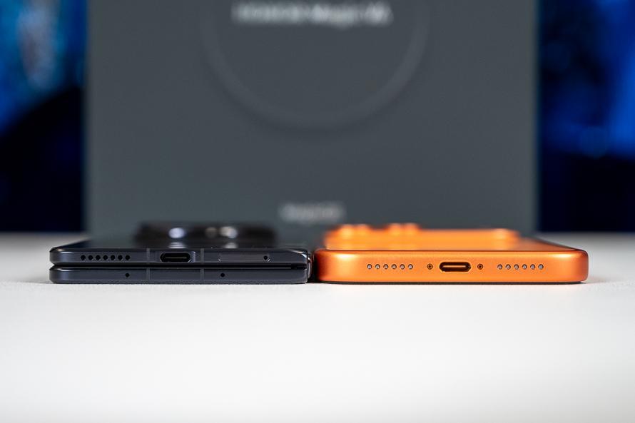 榮耀Magic V6在展開狀態下,最薄的地方約爲4mm,幾乎就只是一個Type-C接口的厚度,即使摺疊以後,機身的厚度也只有約9mm,和iPhone 17 Pro系列基本一致。