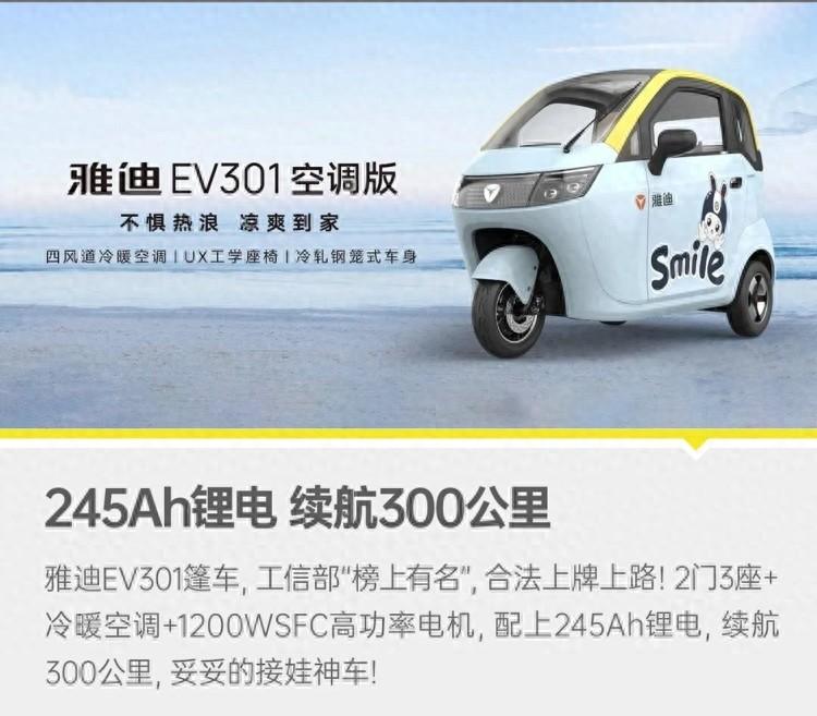 近日,雅迪旗下最新車型EV301空調版正式曝光。這款定義爲“三輪電動車”的新品,憑藉超300公里的續航和車載冷暖空調的配置,迅速在電動車行業與微型新能源車市激起千層浪。