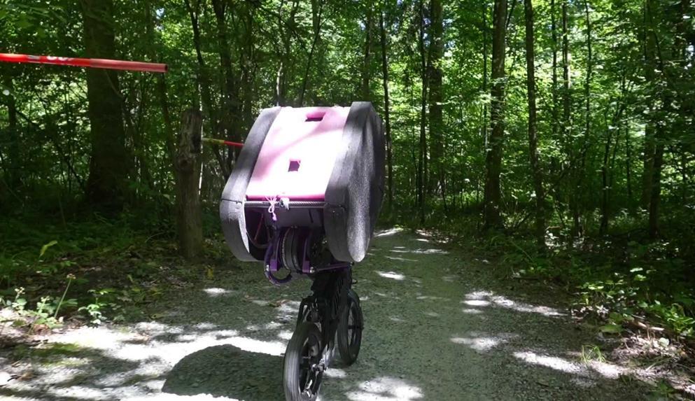 研究人員給它設定的目標非常明確:既要像自行車一樣高效省力,又要像腿足機器人一樣靈活便捷。傳統的腿足機器人雖然有十幾條甚至更多的活動關節,能夠跨過各種障礙,但是結構複雜、造價昂貴、耗電驚人。而普通自行車雖然簡單輕便,但是遇到臺階只能繞道。UMV 則試圖使用最簡答的結構,同時解決這兩個問題。