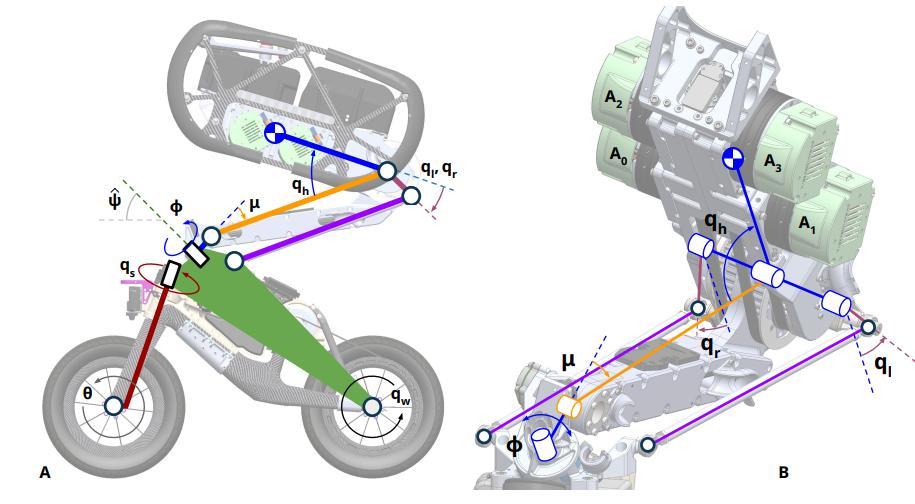研究人員使用了一個名爲可控性的量化指標來優化腦袋的運動軸方向,最終確定那個關鍵關節的固定角度得讓旋轉軸大致指向後輪的軸心,以便能夠實現最高的控制效率。這也說明機器人設計有時也遵循少就是多的原則,把簡單的結構發揮到極致也能創造出驚豔的功能。