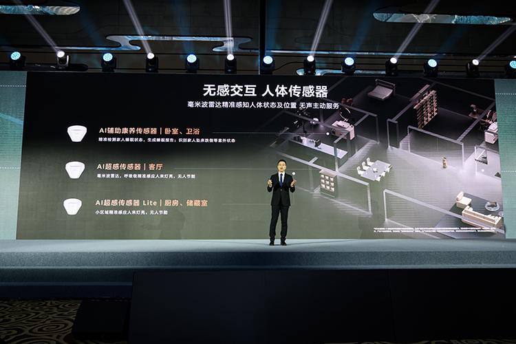 如果說語音交互是在讓家聽懂你,那無感交互,就是讓家開始觀察環境、主動服務。這次溝通會上,華爲明顯把無感交互放到了更重要的位置。包括人來燈亮、人走燈滅、空調風避人吹、睡眠狀態感知、跌倒和墜牀提醒、空氣質量自動優化等,背後都是通過傳感器和空間感知能力來完成。