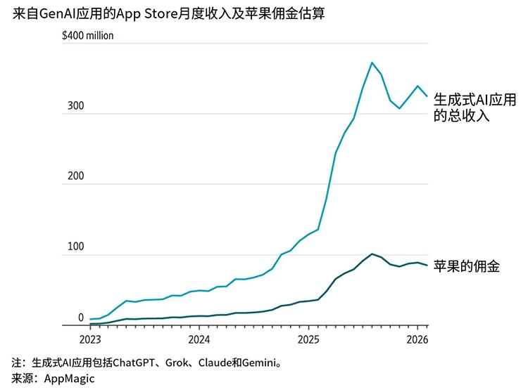 《華爾街日報》援引了市場研究公司AppMagic的數據,生成式AI應用程序們在2025年向蘋果支付了近9億美元的蘋果稅,並且預測蘋果今年在AI上的收入將超過10億美元。所以,蘋果在AI賽道上掙的錢並不是來自自己的AI,而是全靠App Store。