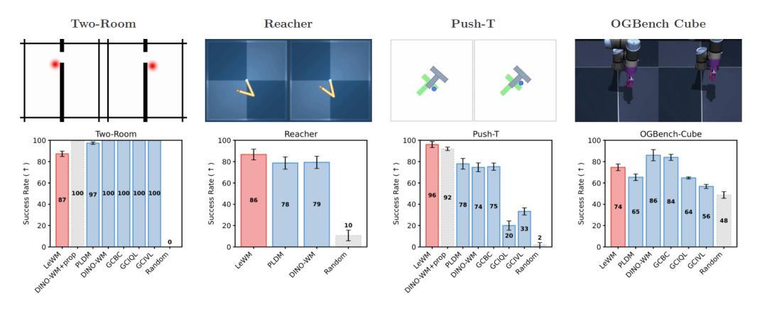 圖 | LeWM 在不同任務測試中的表現(來源:上述論文)