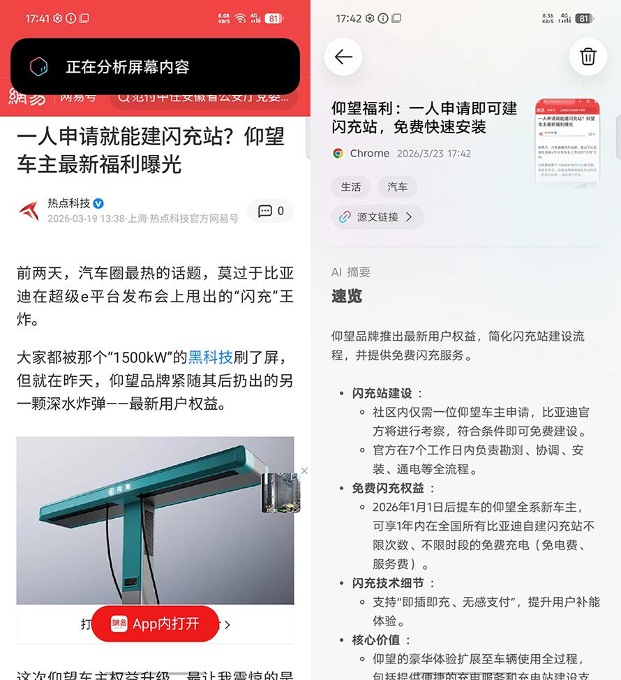 比如這個一鍵閃記,無論是在新聞頁面、視頻頁面,還是看到一張圖片,只要按下One-Tap鍵,AI就會識別當前內容並進行分析,之後保存到個人知識庫中,用戶可以隨時管理和查閱,像是一個隨手可用的記錄小助手。這個功能未必有多麼炫技,但勝在足夠實用,也很符合當下用戶對AI的一種真實期待:不一定要多麼驚豔,但最好真的能幫上忙。