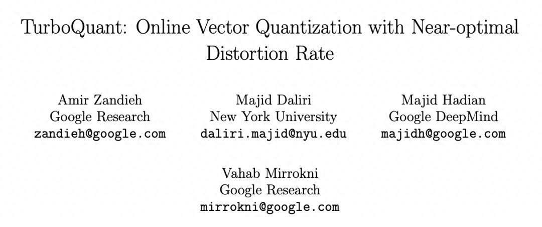 在 NVIDIA H100 GPU 上的測試中,4 比特精度的 TurboQuant 在計算注意力 logits 時取得了相比 32 位未量化基線高達 8 倍的性能提升。這篇論文將於下月在 ICLR 2026 上正式發表,第一作者 Amir Zandieh 是 Google Research 的研究科學家,通訊作者 Vahab Mirrokni 是 Google Research 副總裁兼 Google Fellow。