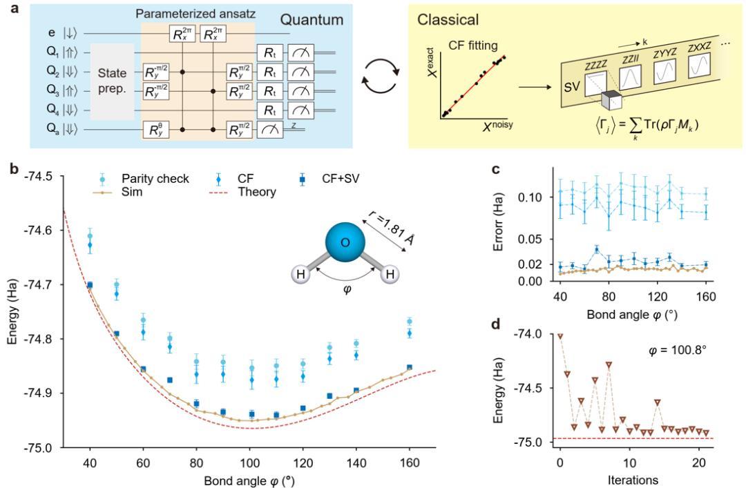 他們在兩個邏輯量子比特上進行“變分量子本徵求解”算法運算,值得關注的是,與理論值相比,在計算水分子電子基態能量方面的結果只存在 20 毫哈特里(mHa)的誤差值。這種精準的計算潛力,爲未來達到化學精度奠定了基礎。