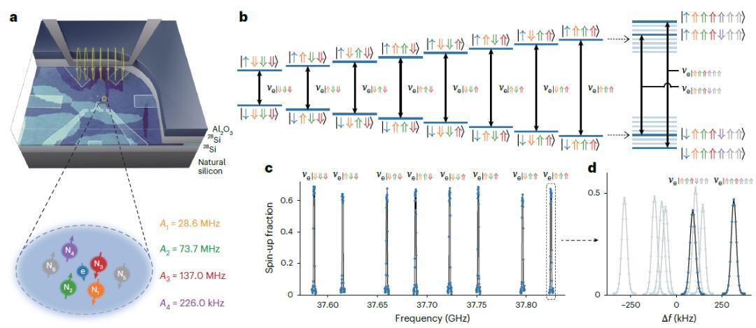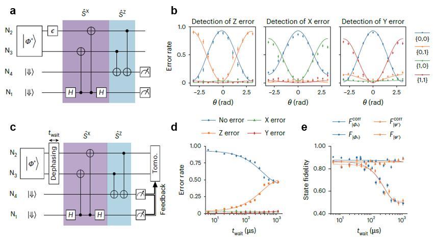 在發表於 Nature Electronics 的成果中,賀煜與團隊利用這套系統證明了高精度線路的可行性。他們用原子核自旋作爲比特,實現對兩個粒子編碼輔助空間的高精度量子非破壞(QND)讀出。