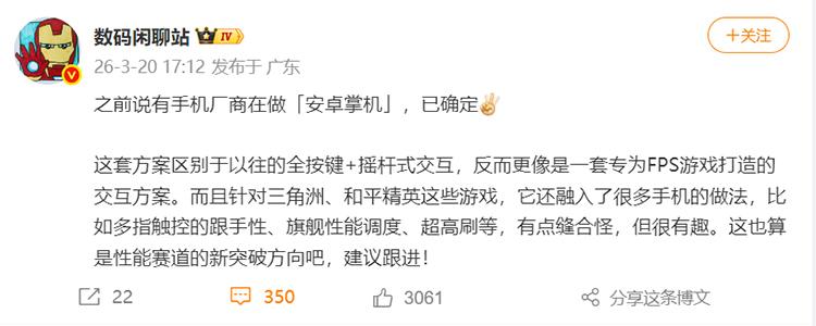 其實在稍早些時候,就有消息稱,有手機廠商正在開發一款安卓掌機,並表示其交互思路與傳統掌機會有所不同,不是全按鍵+搖桿的方案,而是更偏向於FPS遊戲體驗,如多指觸控、高刷顯示和更激進的性能調度。結合這次的新爆料來看,外界普遍認爲,指向的很可能正是一加。