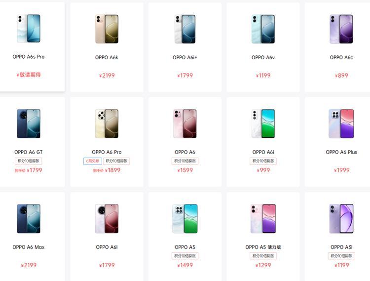 查看OPPO官網會發現很有趣,單單OPPO A6系列的機型就多達11種,命名規則也是千奇百怪,A6k、A6i+、A6v、A6c、A6 GT、A6 Pro、A6、A6i、A6 Plus、A6 Max,外觀的設計也是不盡相同。
