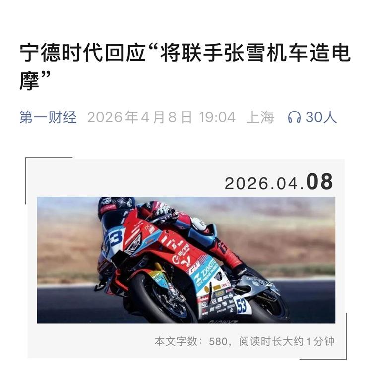 隨後寧德時代方面對外回應,雙方確實在初步接洽電摩合作。張雪機車成立才兩年,首款燃油車交付也纔剛滿一年,這就要“油轉電”了?這步子邁得確實不小。