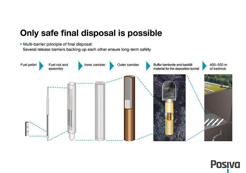 據 Posiva 預計,放射性物質需要數十萬年才能降至正常水平。因此,只有足夠長的時間,才能讓乏燃料對環境放射性降低到最低。