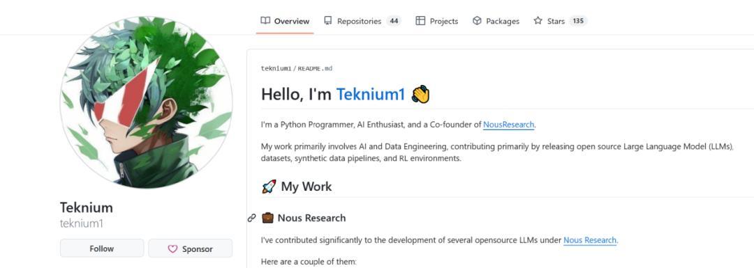 圖 | Teknium 的 GitHub 頭像非常二次元(來源:GitHub)