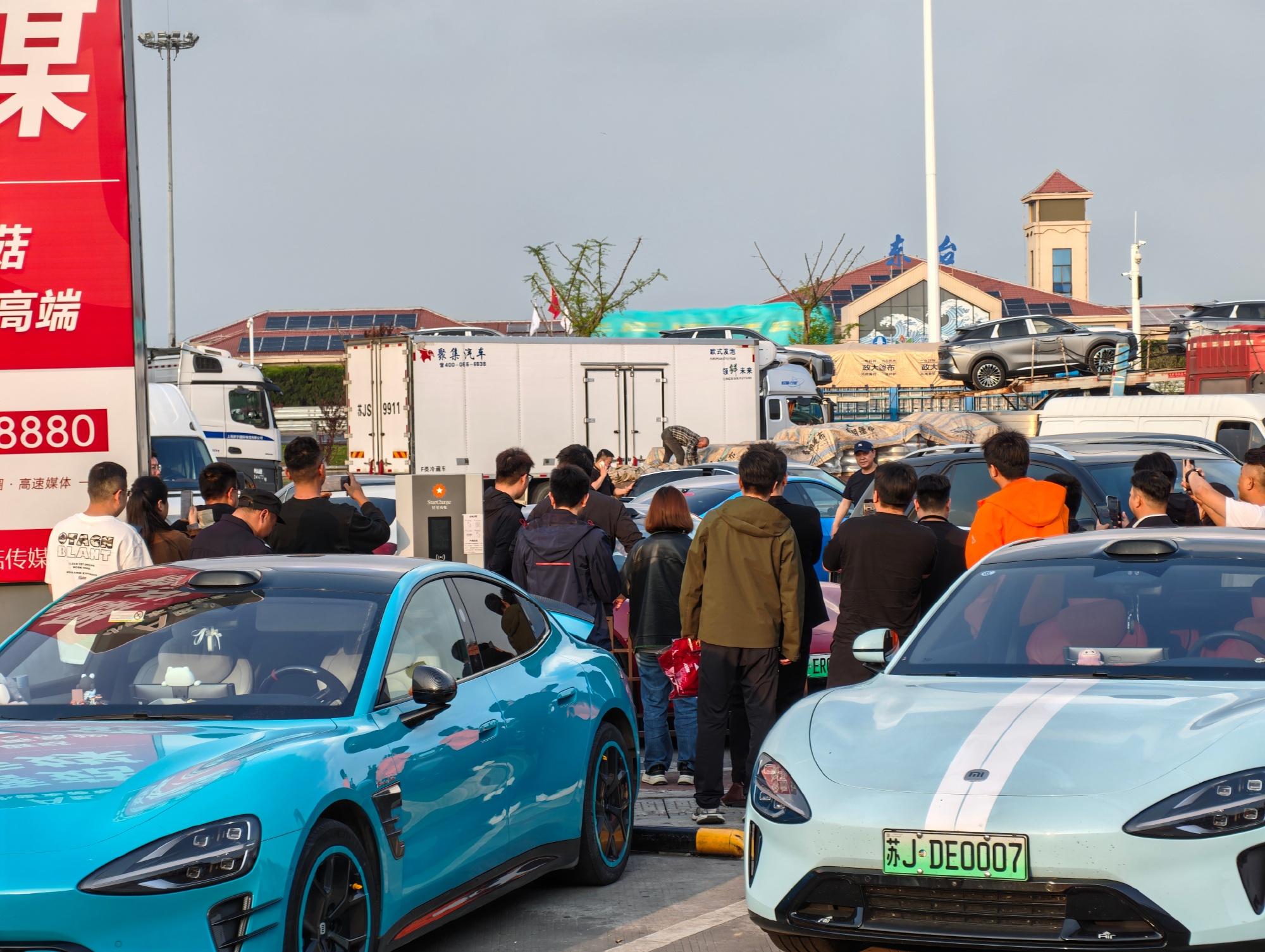 熱點科技瞭解到,該謠言的源頭是4月17日雷軍親自主導的新一代SU7京滬高速長途續航實測的直播活動,如圖雷軍在車裏記錄上一段行程的里程與能耗數據,爲後續續航測試覆盤做準備(地點:江蘇鹽城東臺服務區),而車外聚集的是自發趕來的小米粉絲、車主,車友們在現場拉橫幅歡迎雷軍、準備蘇超聯賽鹽城球衣,並與雷軍積極互動、合影留念。