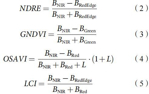 式中,BNIR表示近紅外波段的反射率,BRed表示紅光波段的反射率,BRedEdge表示紅邊波段的反射率,BGreen表示綠光波段的反射率。