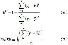 採用決定係數(R2)和均方根誤差(RMSE)2個指標對模型性能進行綜合評價。計算公式如下: