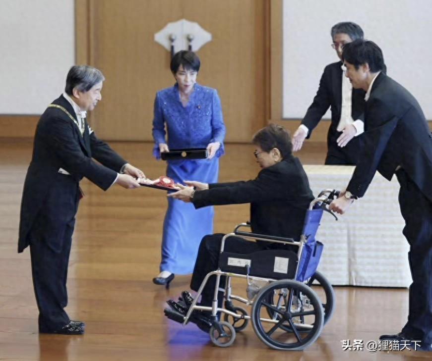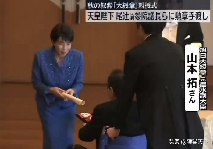 高市早苗這次捅了簍子,她丈夫在幹什麼?其實她丈夫最近也公開露面了,而且是大事。日本的德仁國王向高市早苗的丈夫山本拓頒發了旭日大綬章,不過山本拓是坐着輪椅接受勳章的,還要有工作人員推着他。當時高市早苗也在旁邊都沒幫忙推輪椅,她在幫德仁國王端着勳章盒子,穿的跟禮儀似的。