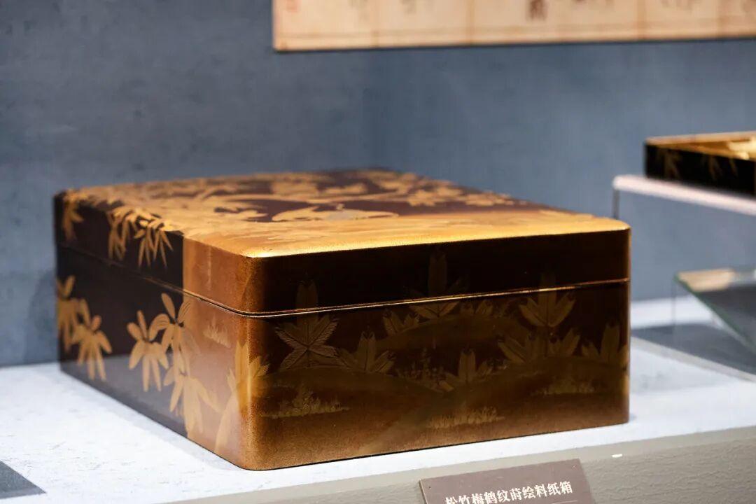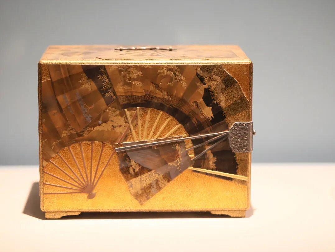 故宮藏“金漆嵌螺鈿長方提匣”,既有蒔繪的金粉紋理,又各面融入中國螺鈿工藝的寶石和貝殼鑲嵌,是中日審美與工藝融合最好例證。