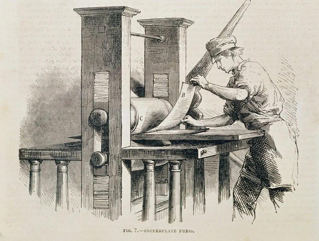 銅版畫工藝亦是這一階段皇家習得的重要西方技藝。1765-1774年,郎世寧與法國人王致誠、波西米亞人艾啓蒙、意大利人安得義等宮中傳教士畫家繪製完成《平定準噶爾回部得勝圖》的畫稿,清宮花了3萬兩白銀在法國定製爲大幅銅版畫,法蘭西皇家藝術學院院長侯爵馬里尼(Marigney)親命著名雕版技師柯升(Cochin)主事,挑選一流雕工完成十六塊銅版,以特製“大盧瓦”紙和特種油墨精印兩百套,前後耗時十年。