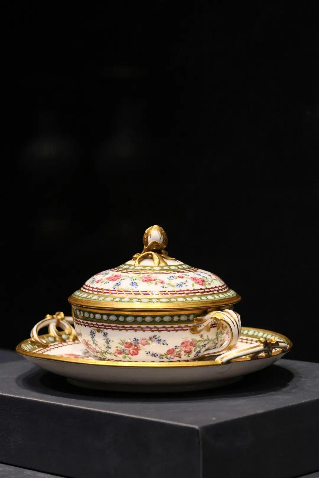 永遠領導時尚潮流的蓬帕杜夫人便是這一工藝的擁躉,一家名爲“土耳其的憂鬱”(Au Chagrin de Turquie)的東方藝術品商店在1751年的賬簿記錄顯示,她曾在此購買了150多件金屬包鑲的東方瓷器,其中一對改裝後的銅鎏金青瓷瓶就要1680裏弗——相當於當時東印度公司一名年輕水手10年的薪水。洛可可式傢俱的青銅鍍金雕飾上點綴着屏風碎片和瓷器飾件,標誌着異國情調趣味與精緻裝飾藝術相結合,中國器物就這樣參與建構着洛可可美學。