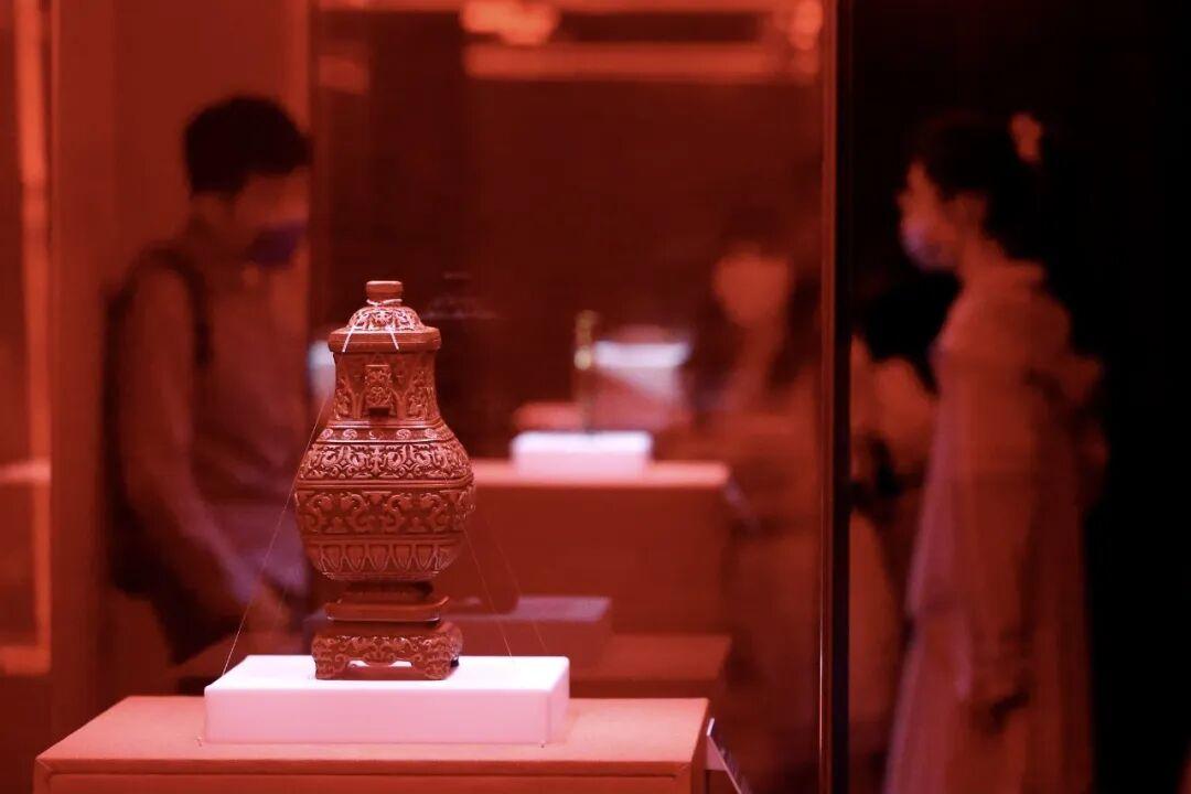 ▌2021年7月參觀者在嘉德藝術中心參觀“朱豔華綺——故宮博物院藏乾隆朝漆器展”