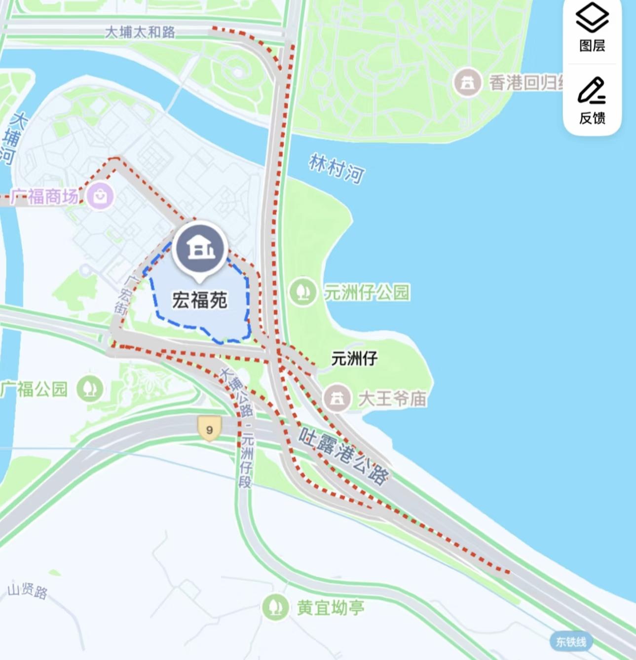 住在在大埔區的居民有的住公共屋邨,就是港劇裏常說的公屋,比較出名的有大元邨、富善邨、廣福邨、太和邨等等。也有住在屋苑的,比如頌雅苑、宏福苑,這個宏福苑挨着元洲仔公園,那邊就是吐露港海邊,周圍還有林村河。