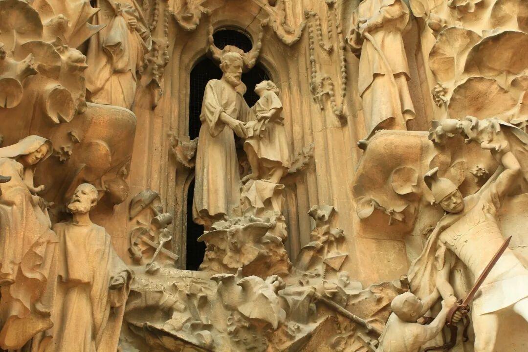 與聖誕立面的繁複相呼應的是受難立面的簡潔。高迪生前就已經繪製出受難立面的全圖,用棱角分明的骨架形作爲支撐,給人以冷峻和恐懼的感覺,展現耶穌受難的痛苦,引人深思。