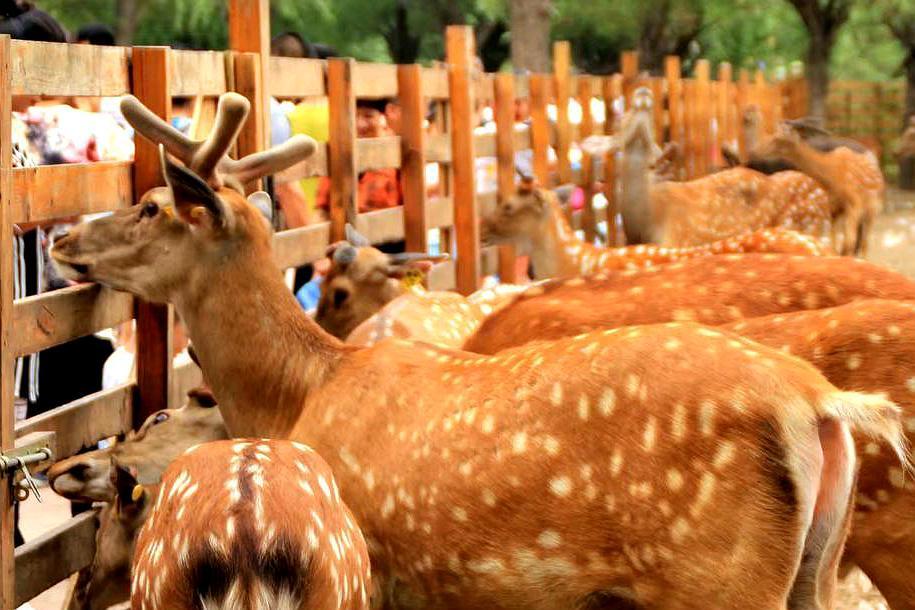 在聖鹿園與散養的梅花鹿親密互動(提前準備一些乾淨的胡蘿蔔條)。