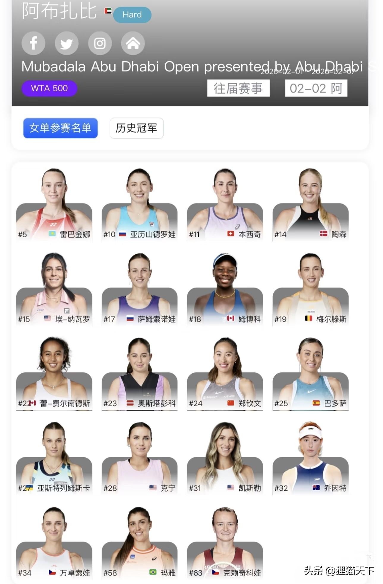 接下來有阿布扎比WTA500賽事,目前報名的對手也不算很強,排名最高的是萊巴金娜,到時候她很有可能退出本站比賽。鄭欽文還不確定是否能參加比賽,今年賽季還很長希望她慢慢恢復到最佳狀態。