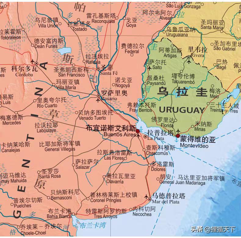 烏拉圭這個國家地處南美洲東南部,那裏與巴西和阿根廷挨着,西有烏拉圭河,南面是拉普拉塔河,與阿根廷隔河相望。烏拉圭面積有17.6萬平方公里,總人口約350萬人,這是一個美麗富饒的較發達國家。