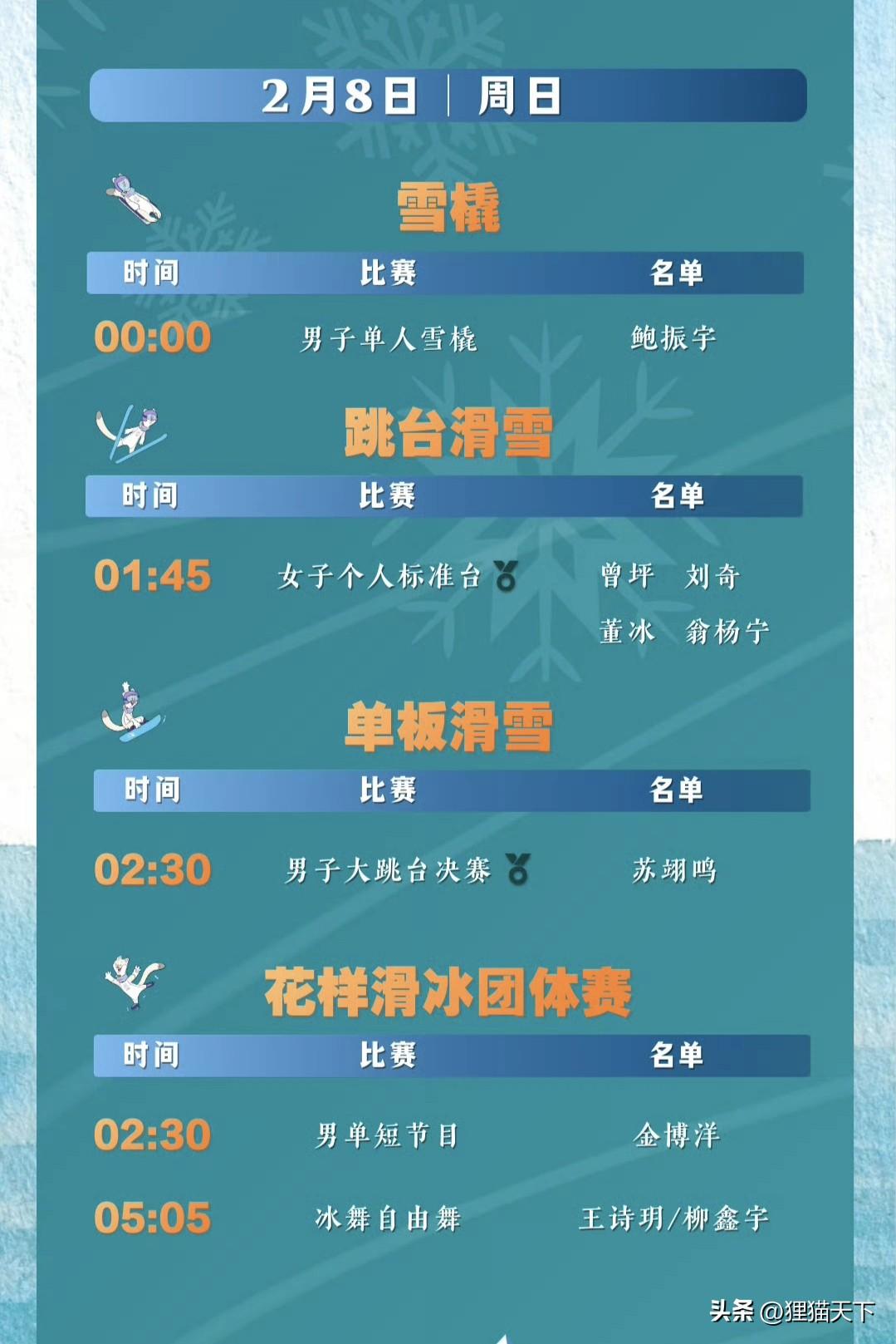 總體來說這次米蘭冬奧會由於時差關係,好多決賽安排的時間都在咱們的夜晚,大家可能天一亮醒來就看到好消息傳來,希望金牌獎牌都能順利拿下。