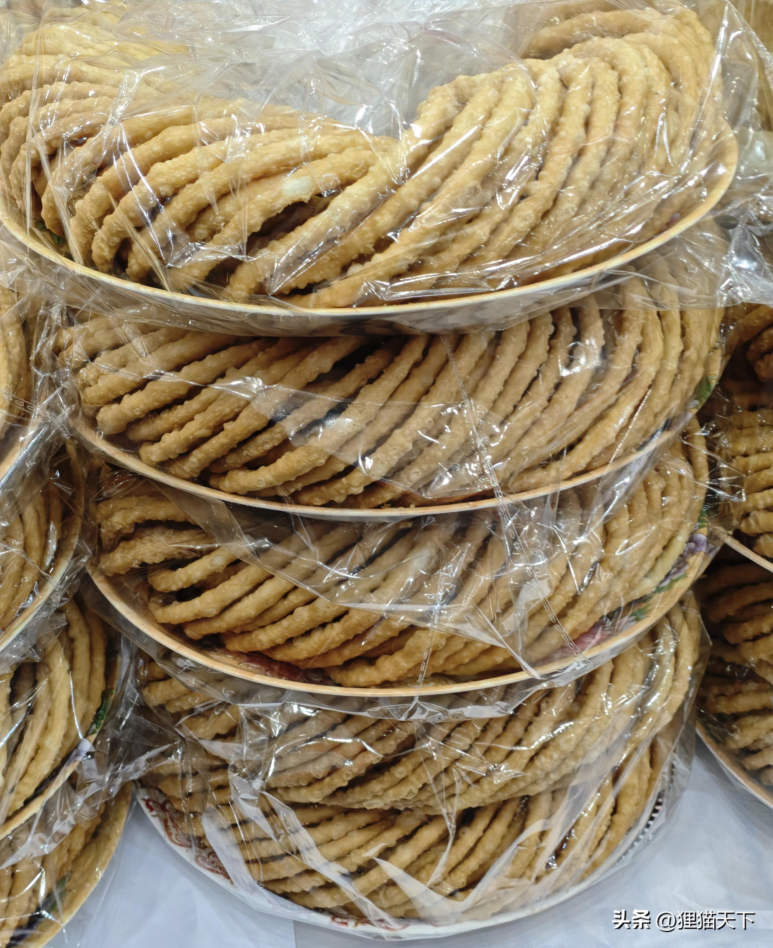 饊子是按斤稱的,35元一公斤,一盤一盤整整齊齊碼着。還有柴火饢看着軟香好喫,逛的時候眼花繚亂,人也很多,只簡單拍了一部分商品。