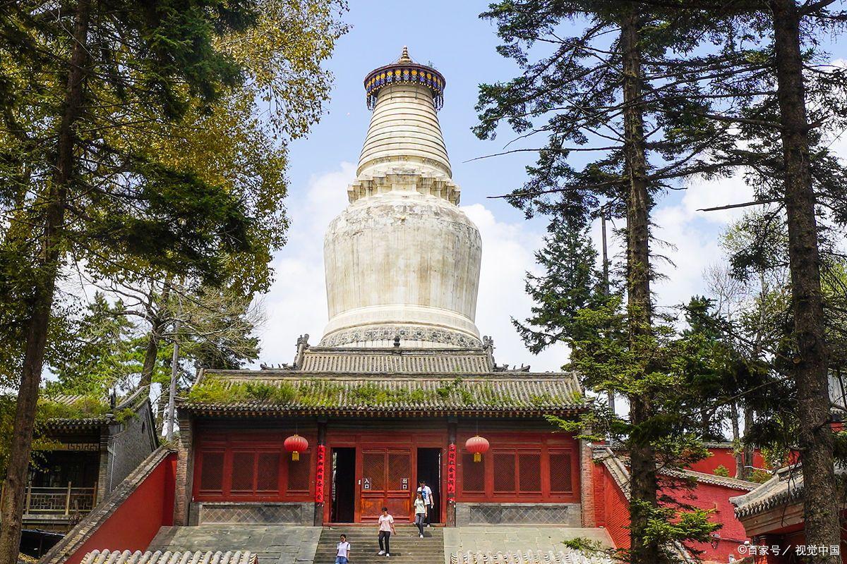 顯通寺南邊的塔院寺因寺內白塔而成名,這座藏式大白塔由元代時尼泊爾名匠阿尼哥設計,北京妙音寺白塔同樣出自其手。現在看到的白塔爲明代重修的釋迦摩尼舍利塔,也是五臺山的標誌性建築。相傳塔內藏有阿育王造舍利塔,寺內的文殊塔更藏有文殊菩薩的頭髮,所以塔院寺成爲佛教徒到五臺山後必拜的寺院,但遊客量卻一般。