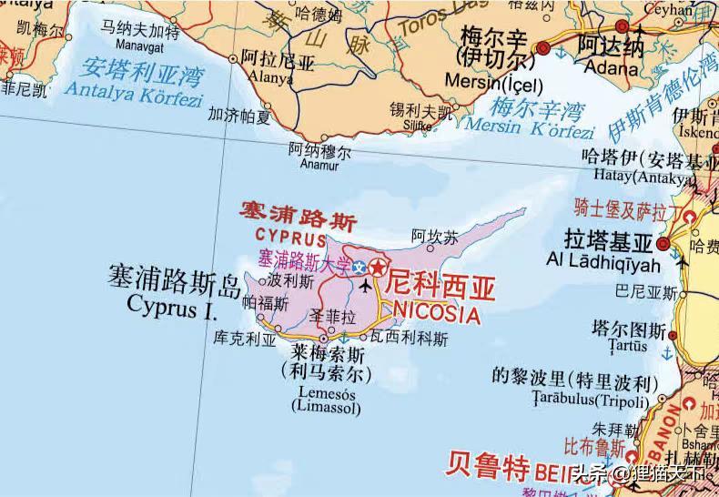 從地理位置來看,塞浦路斯在地中海東部,這是一個島國,在地中海面積排名第三,有9251平方公里,島上約有125萬人,主要來自希臘和土耳其。