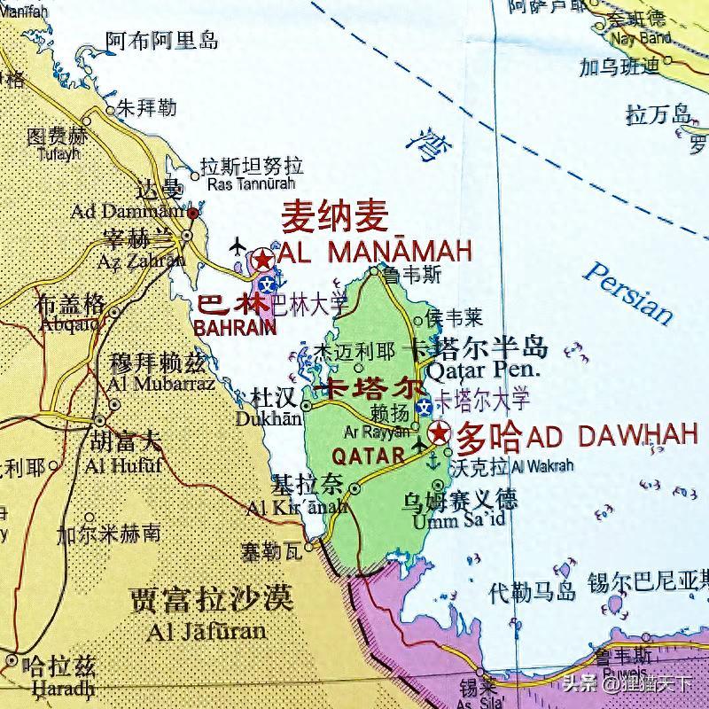 波斯灣最小的國家是巴林,如今也被戰火波及到了。巴林的具體位置在卡塔爾和沙特之間,往西與沙特有跨海大橋相連接。這是一個島國,總面積只有786平方千米,島上總共有158萬人口,首都叫麥納麥。