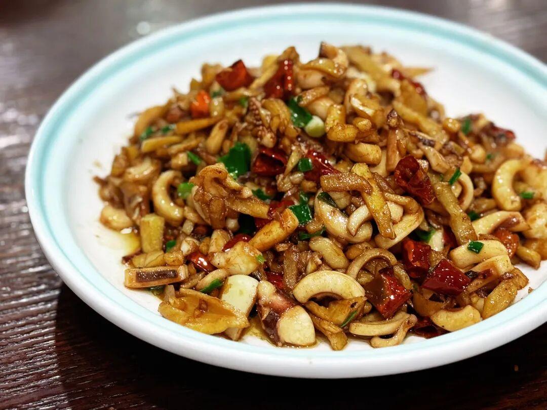 魷魚的鮮味和蘿蔔乾的鹹香在熱油裏相遇,加一點幹辣椒和蒜粒提香,香氣直往鼻子裏鑽。