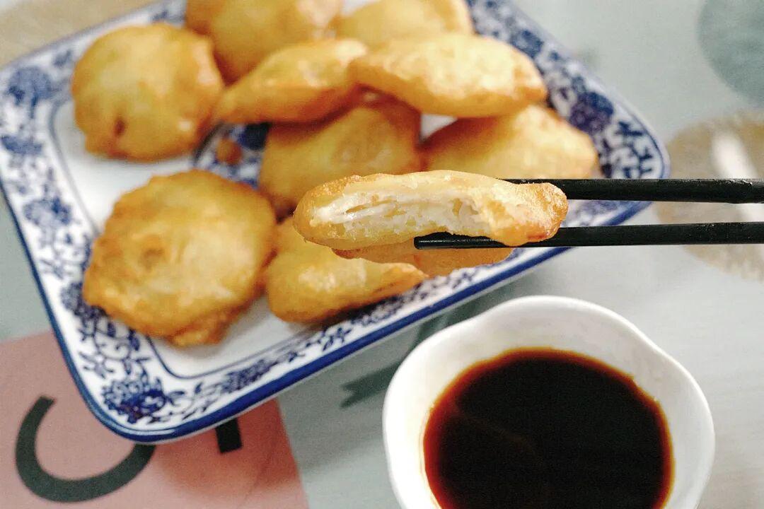 他們家的炸藕餅也很好喫,藕片切得很薄,夾着肉餡,裹粉後炸得酥酥脆脆,一個接一個喫得停不下來。