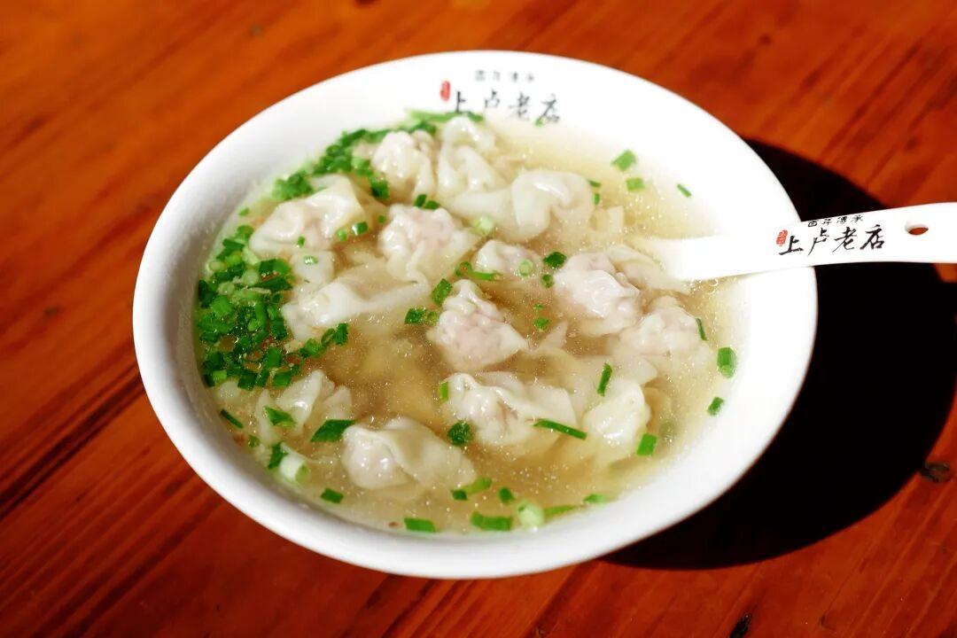 上盧餛飩的湯底看似清淡,實則鮮美,湯裏的豬油味混合蔥花香氣逼人。