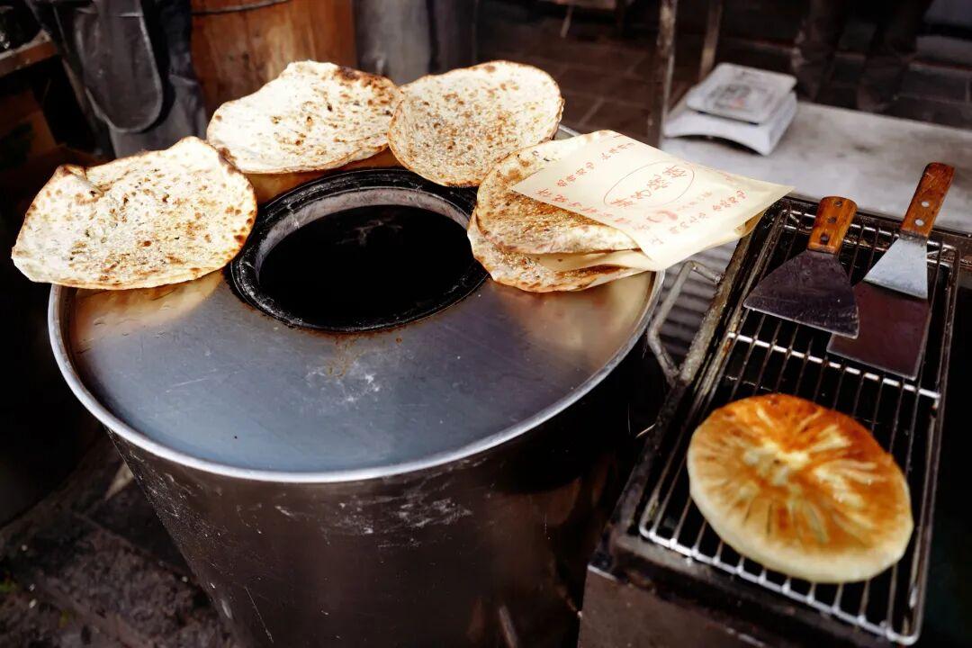 燒餅烤得超級脆,咬一口,能聽見清晰的"咔嚓"聲,緊接着就是滿嘴的面香和梅乾菜香,甜甜鹹鹹的很好喫。