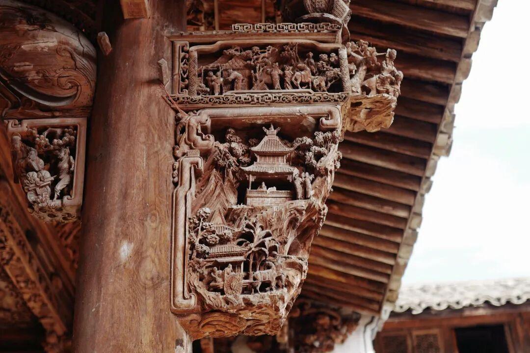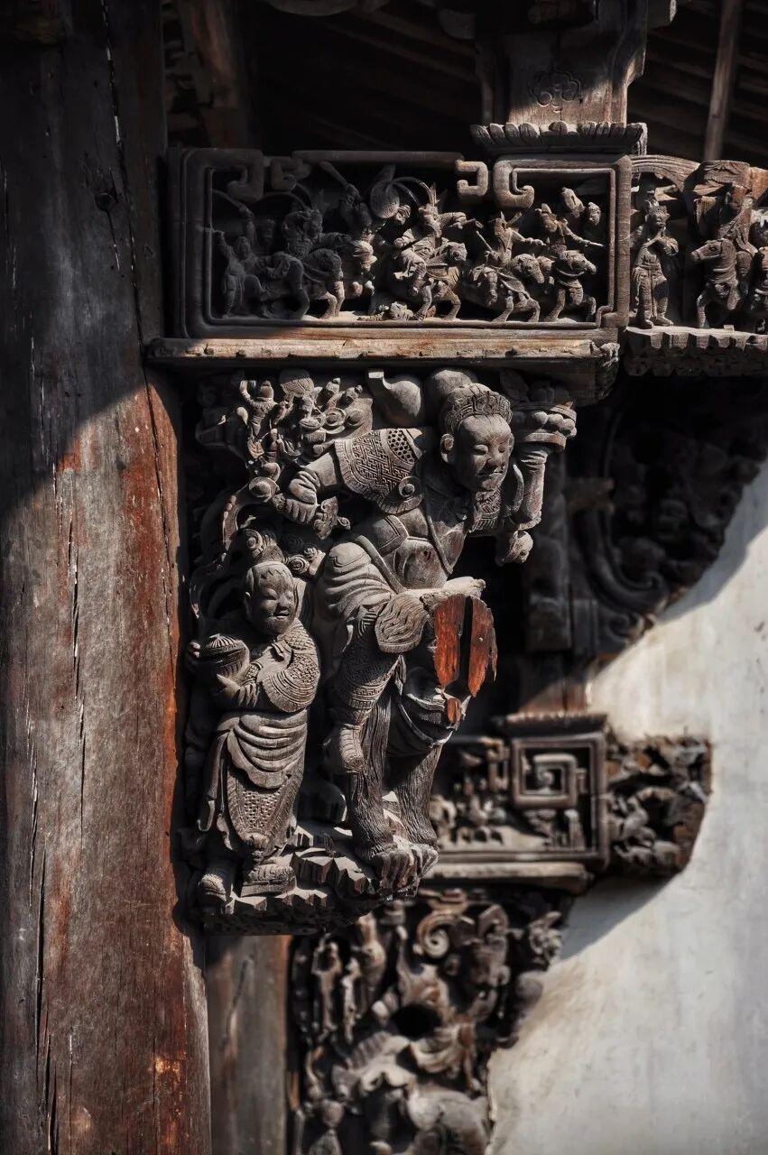 在盧宅,所有大梁、支柱上的木雕造型各不相同,人物、神獸的神情栩栩如生。