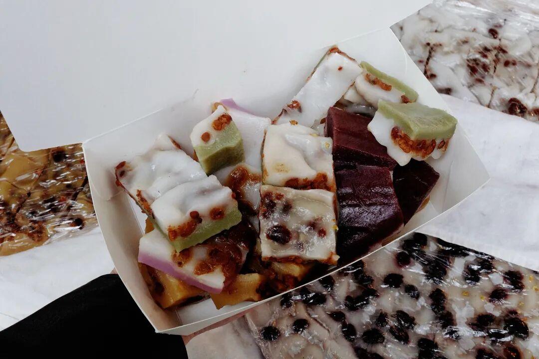 我更喜歡改良版的糖洋,口感Q彈,口味也是超級多,紫米、紫薯、艾草……可以多口味拼,甜而不膩,十塊錢左右就能買這一盒香甜的糯嘰嘰小糕點。